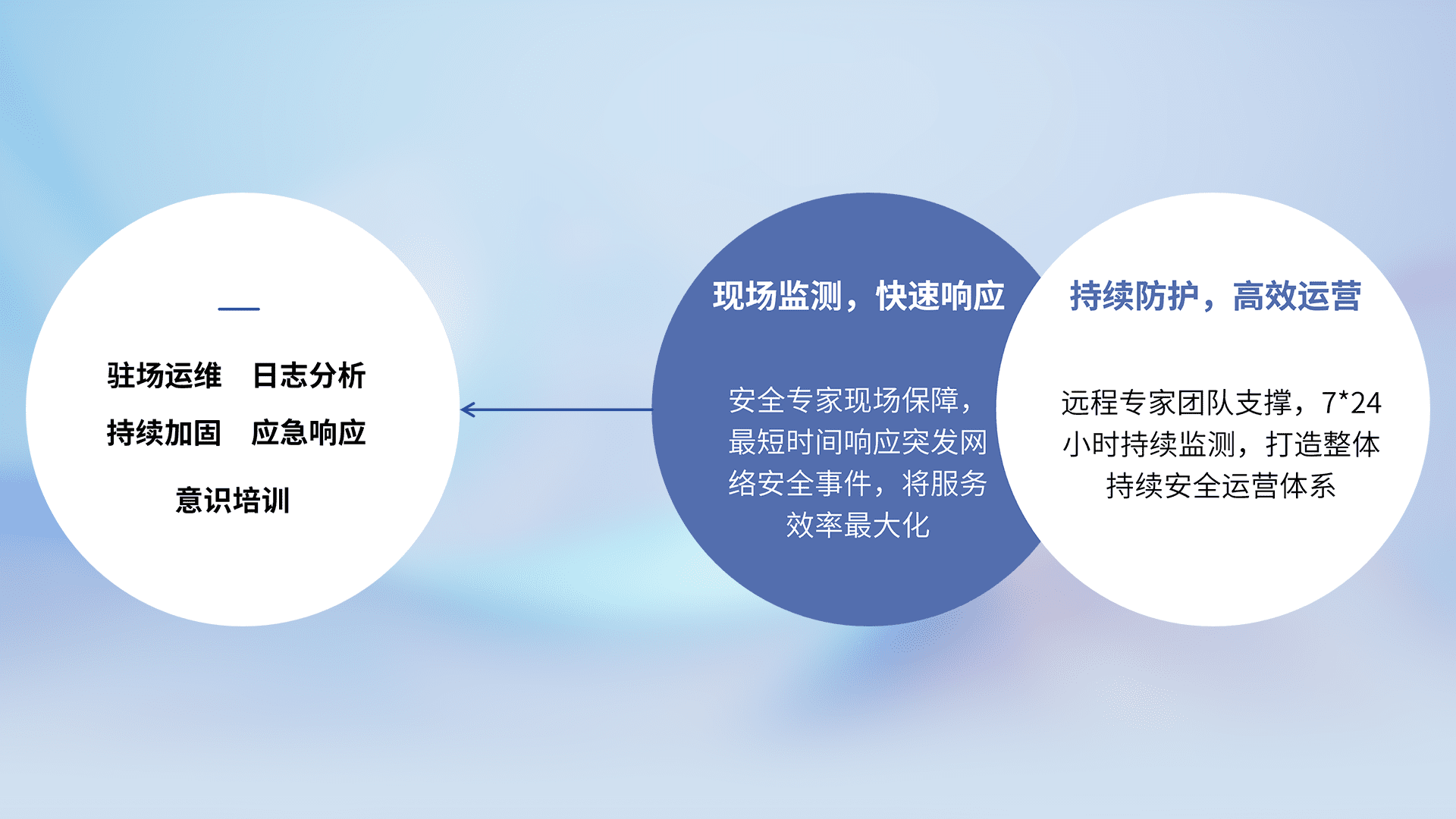 针对客户行业特性,,,,提供专属的一站式安全管理服务,,帮助客户全面感知网络空间威胁,,,,通过安全专家的线上、、线下防护支持,,实现风险闭环,,,,将安全保障常态化,,为客户打造常态化安全运维运营服务。。。。